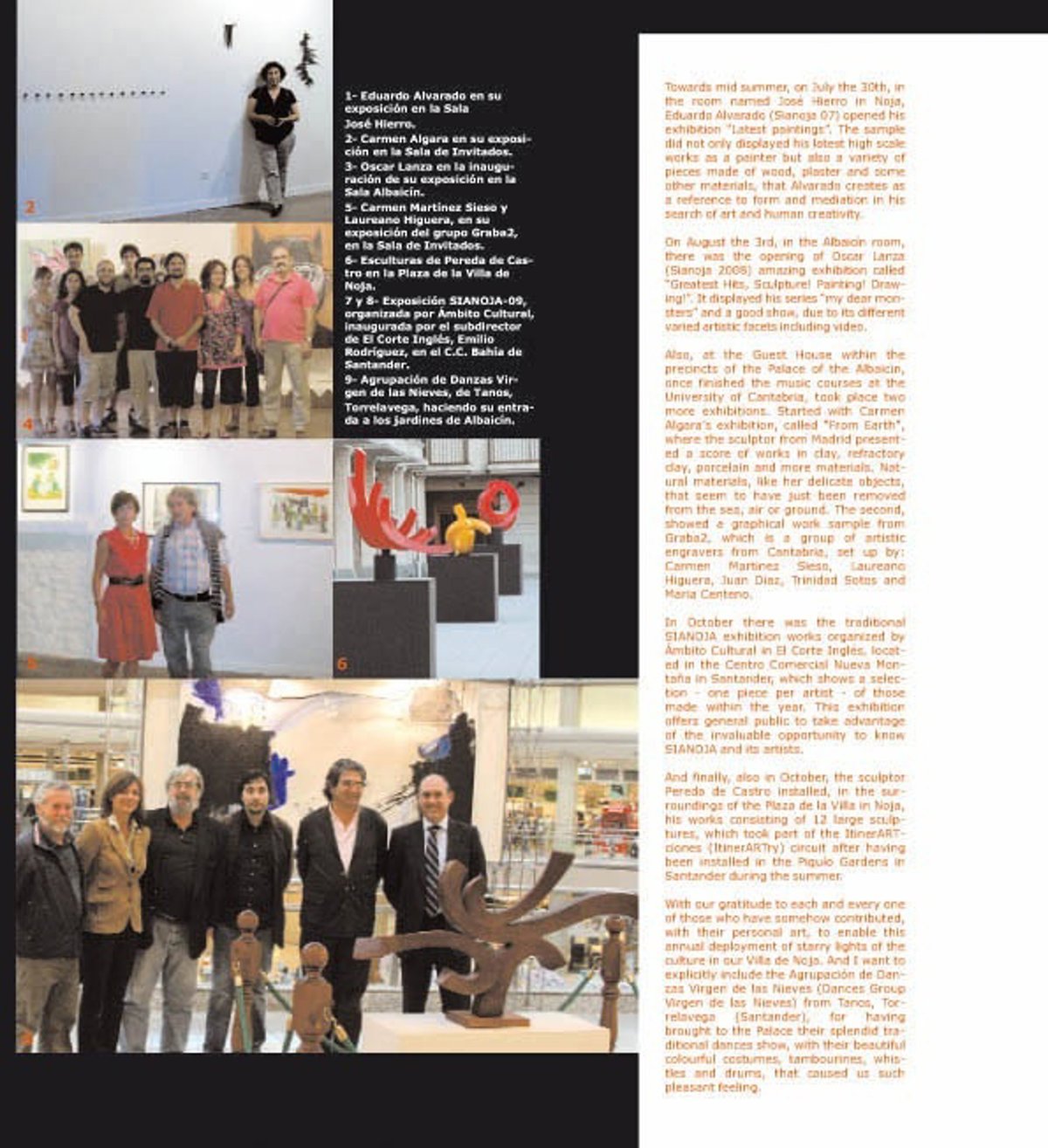 El programa de actividades comienza este jueves, 23 de junio, a las 13.00 horas, con la presentación de los artistas a las autoridades y a la prensa, un acto en el que se mostrará la versión corta del vídeo '10 años de SIANOJA' de Domingo Sarrey. Ya por la tarde, a las ocho, se proyectará la versión íntegra.