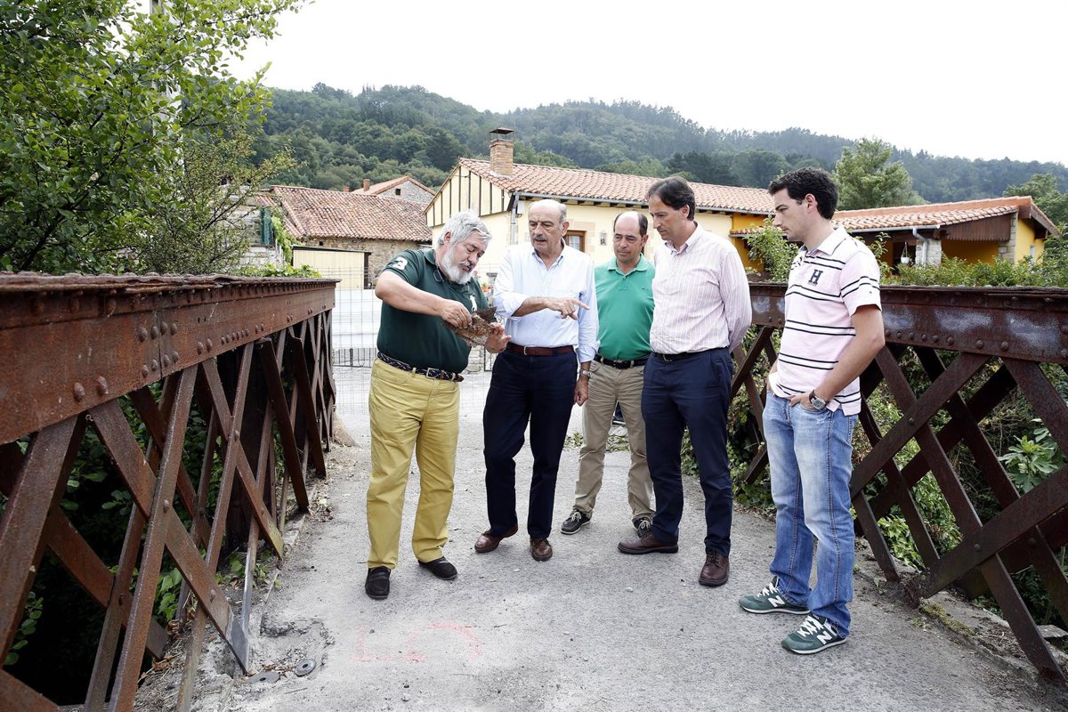 El consejero de Obras Públicas y Vivienda, José María Mazón, junto con el alcalde de Arenas de Iguña, Laureano Gómez; el director general de Obras Públicas, José Luis Gochicoa, y otros miembros de la Corporación municipal, ha comprobado sobre el terreno la ejecución de esta actuación.