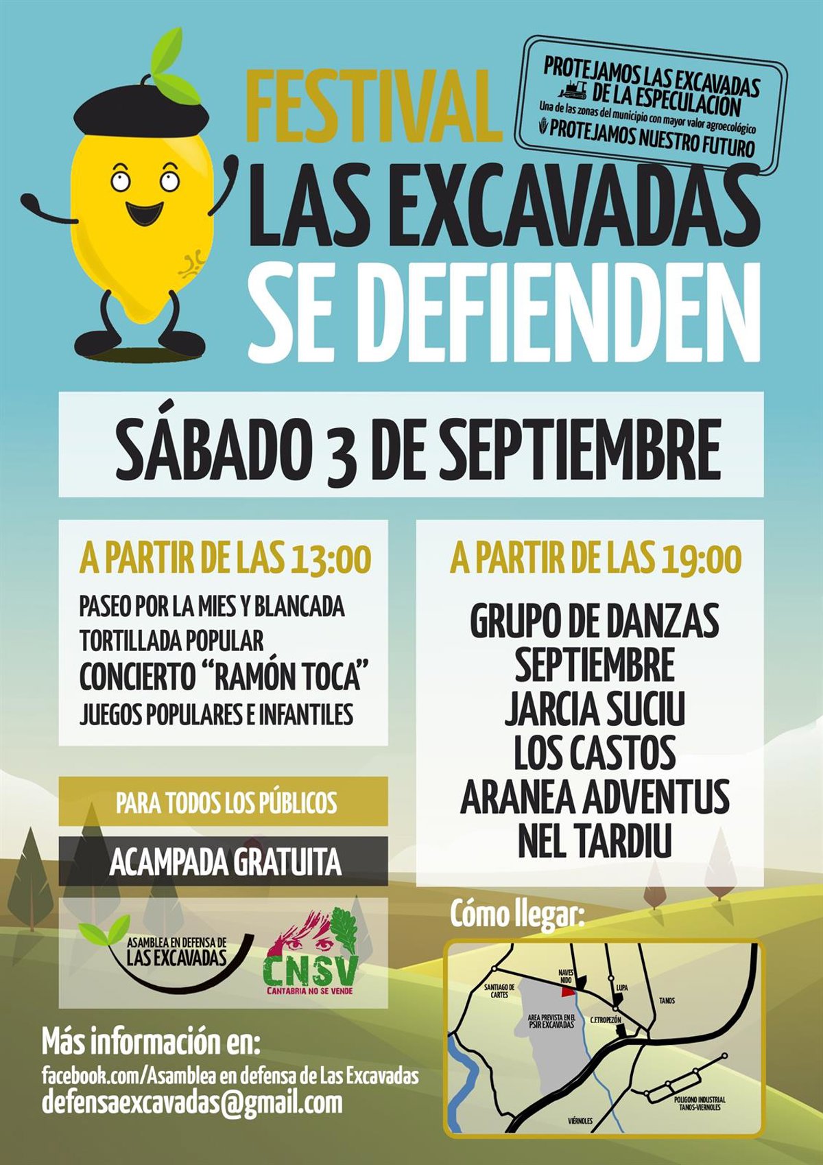 La Asamblea en Defensa de las Excavadas, en colaboración con Cantabria No Se Vende, ha organizado el 'Primer Festival en defensa de Las Excavadas', que tendrá lugar el sábado 3 de septiembre con el fin de "proteger de la especulación una de las zonas de Torrelavega con mayor valor agroecológico".