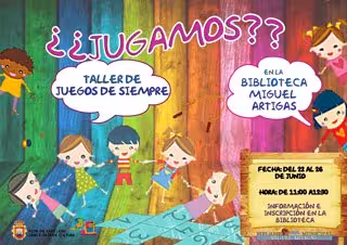 Dirigido a los niños del municipio de 3 a 12 años, este taller infantil pretende no sólo recuperar los juegos de antaño sino también desarrollar la imaginación de los niños a través de actividades como la pita, el fútbol con chapas, la comba o la goma.