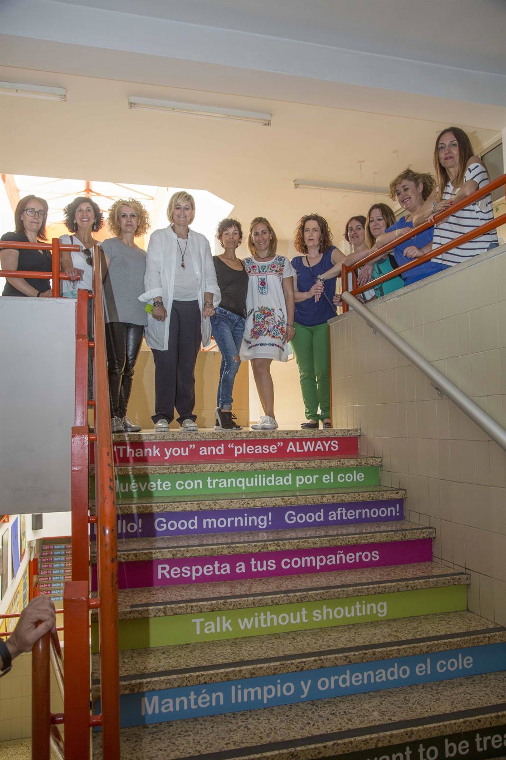 Según informa el Ayuntamiento en nota de prensa, se trata de una iniciativa "pionera en la región" consistente en la colocación de coloridos vinilos educativos en las escaleras del centro con información relativa a las tablas de multiplicar y operaciones matemáticas, series de números, así como frases en español y en inglés en las que se transmiten valores positivos y se promueve la convivencia.