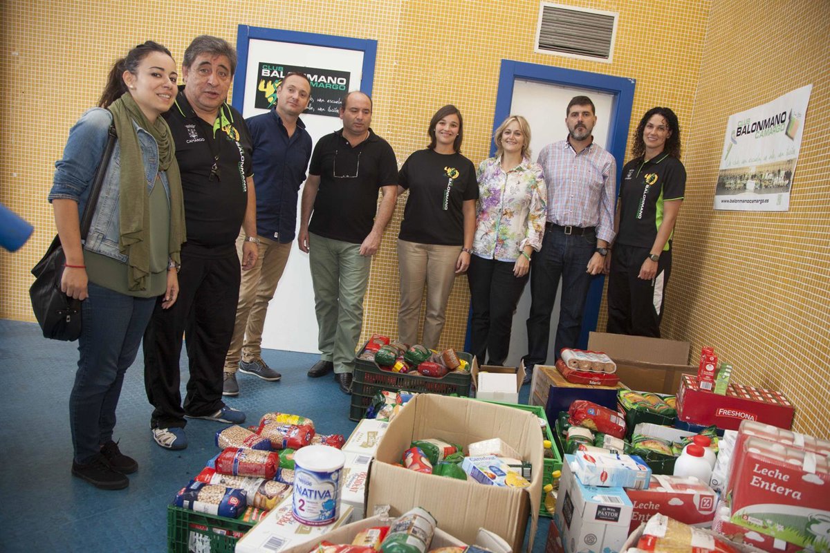 Los integrantes de los clubes, junto a familiares, espectadores, directivas, y Federación Cántabra de Balonmano han conseguido reunir esta importante cifra de alimentos.
