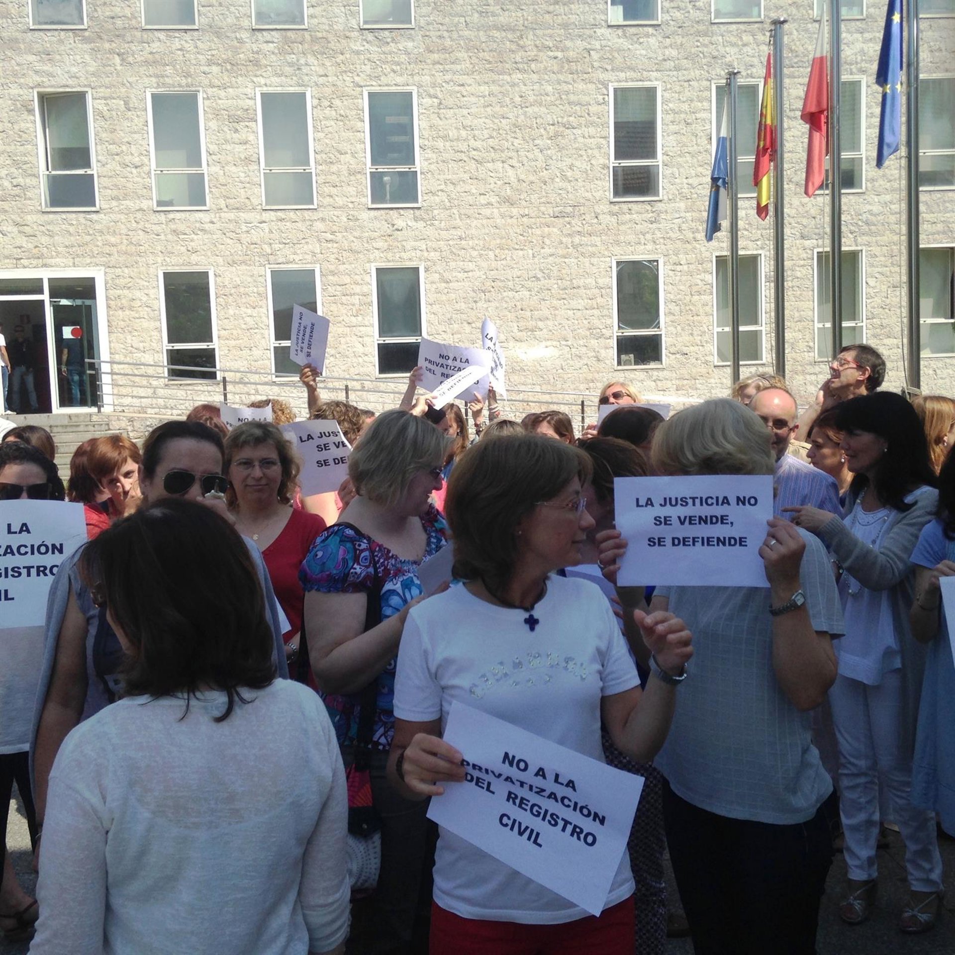 Alrededor de 70 trabajadores de la Administración de Justicia se han concentrado este jueves en el complejo judicial de Las Salesas de Santander para defender el carácter público y gratuito de los registros civiles.