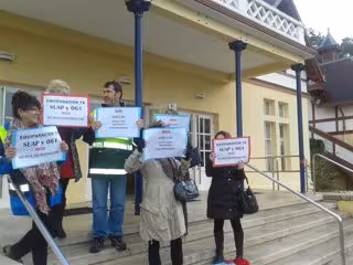 Los trabajadores han aprovechado para expresar sus quejas a la consejera a la salida del acto de presentación del Plan de Salud Mental 2015-2019 celebrado en el Paraninfo de la Magdalena, al que también ha asistido el presidente de Cantabria, Ignacio Diego, quien ha intervenido en el cruce de declaraciones entre Gobierno y trabajadores de ambos servicios sanitarios.