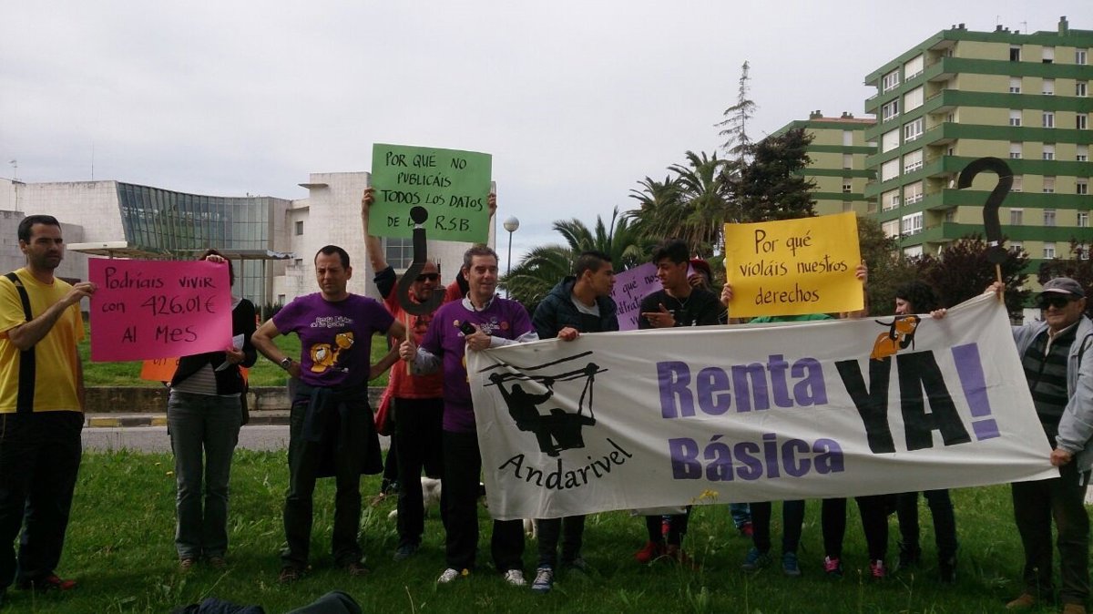 El colectivo Andarivel ha vuelto a concentrarse este jueves en la sede del Instituto Cántabro de Servicios Sociales (ICASS) para protestar por las condiciones impuestas para cobrar la renta social básica, que según denuncian, "hacen que muchas personas, a pesar de no tener ingresos, no consigan cumplir alguno de los requisitos que esa ley exige".