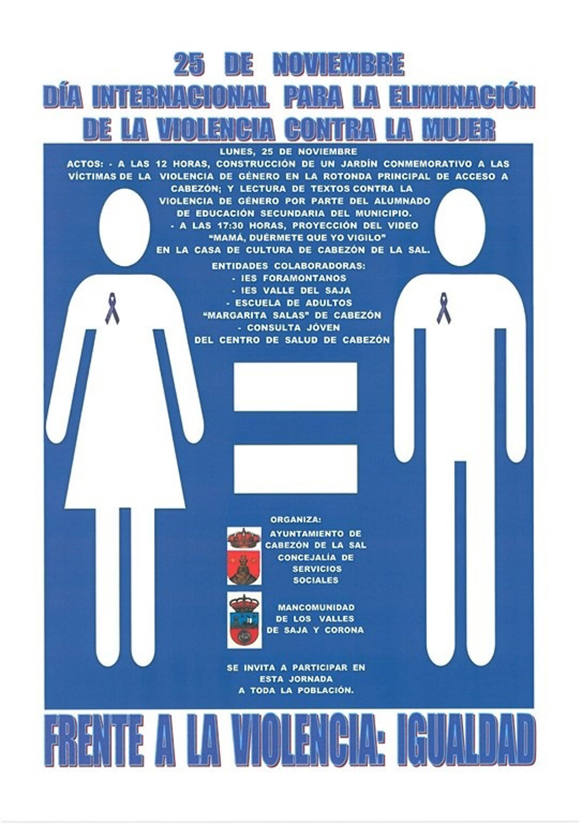 La Concejalía de Servicios Sociales y la Mancomunidad de los Valles Saja y Corona han organizado un programa con diversos actos, que se desarrollarán bajo el lema 'Frente a la Violencia, Igualdad', según ha informado el Ayuntamiento de Cabezón de la Sal en un comunicado.