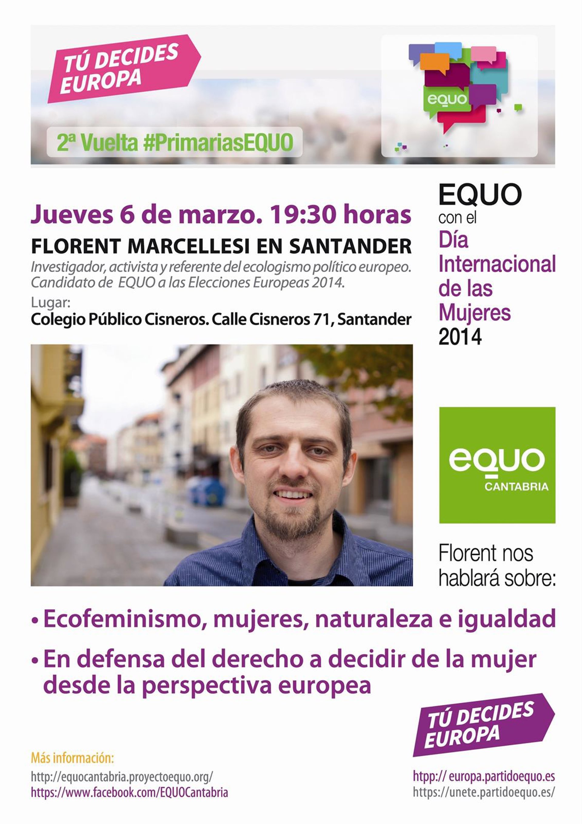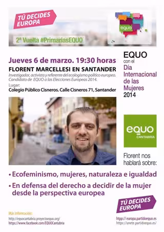 El candidato más votado en la primera vuelta de las primarias abiertas de EQUO para encabezar la lista al Parlamento Europeo, Florent Marcellesi, estará este jueves 6 en Santander para hablar sobre ecofeminismo y el derecho a decidir de las mujeres desde una perspectiva europea.