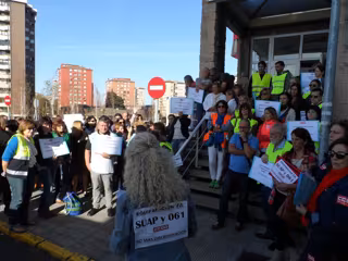 Precisamente, los trabajadores del SUAP y del 061 concentrados han pedido a la consejera en consignas que han gritado que "mueva la cartera" y, en carteles exhibidos, le han advertido que "o negociación o huelga".