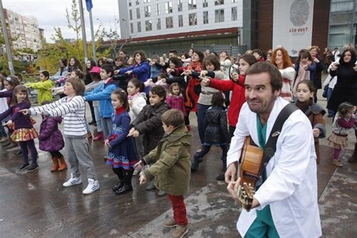 Alrededor de 50 personas bailaron con la música del cantautor cántabro Mario San Miguel, que cedió desinteresadamente los derechos de uso de su canción 'Baile con el porvenir', que sirve de base para contar cómo los niños y niñas ingresados en Valdecilla también encuentran momentos para la diversión y el juego.