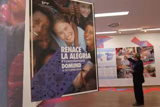 El lema de la campaña del DOMUND de este año se ha inspirado en la Exhortación Apostólica 'Evangelii gaudium', que comienza con la frase "Con Jesucristo nace y renace la alegría". Para ilustrar esta jornada, se ha optado por un cartel en el que figuran unos jóvenes de diferentes razas que expresan la alegría que brota del corazón, un imagen que pretende demostrar la fuerza contagiosa del amor que descubren quienes viven la experiencia de la misión.