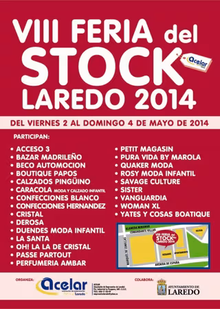 Un total de 23 comercios y establecimientos de Laredo participarán desde este viernes, 2 de mayo, hasta el domingo, día 4, en la octava edición de la Feria del Stock del municipio que organiza la Asociación de Empresarios de Laredo (ACELAR) en colaboración con el Ayuntamiento.