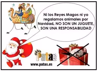 Con esta campaña, PATAS indica en un comunicado que pretende que "no se regalen animales en Navidad, puesto que muchos de ellos son abandonados unos meses después y acaban muertos atropellados o sacrificados en las perreras".