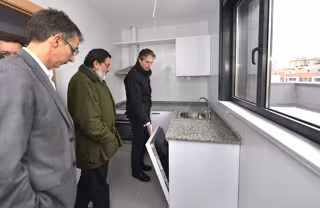 Así lo ha anunciado este viernes el alcalde, Iñigo de la Serna, durante una visita a la promoción de viviendas en la que ha comprobado que las obras están acabadas y finalizando el montaje de las cocinas, puesto que las VPO se entregan con las cocinas equipadas con frigorífico, vitrocerámica, horno, lavadora, lavaplatos y fregadero.
