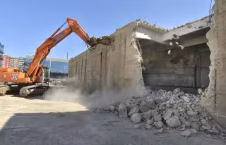 Posteriormente, se llevará a cabo el derribo, mediante pala retroexcavadora con brazo de largo alcance, empezando por la nave número 10.