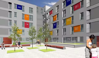 El inmueble tendrá una fachada ventilada y cinco portales a los que se accederá tanto desde la plaza interior como de las calles exteriores. En cuando a las 111 viviendas, éstas se distribuirán de la siguiente forma: cuatro de una habitación; 68 de dos habitaciones y 39 de tres habitaciones.