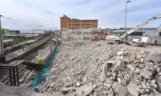 El edificio, destinado a uso industrial, fue construido en 1967. Los informes técnicos condujeron a la declaración de ruina, al constatar un estado de completo abandono desde hace años, que había ocasionado la desaparición de las carpinterías, tanto exteriores como interiores, así como filtraciones, que habían provocado un fuerte deterioro en la estructura.