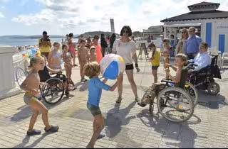 La Primera Playa del Sardinero se convertirá, un verano más, en un singular espacio de juego al aire libre, donde los niños aprenderán qué es la discapacidad con juegos en los que sentados en sillas de rueda o cubriendo sus ojos con un antifaz tratarán de derribar el mayor número posible de bolos, pasarse el balón sin que se caiga o coger tantos peces como puedan con la ayuda de una caña.