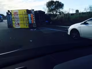 La colisión se ha producido en el kilómetro 189,700 y el camión ha volcado por el impacto, mientras el turismo ha sufrido daños materiales. El carril sigue cortado desde entonces y en el lugar se encuentran agentes de Tráfico.
