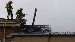 Los efectivos del 112 han trabajado para evitar la propagación del fuego a la vivienda, que finalmente sólo ha sufrido daños en unos nueve metros cuadrados de la cubierta.