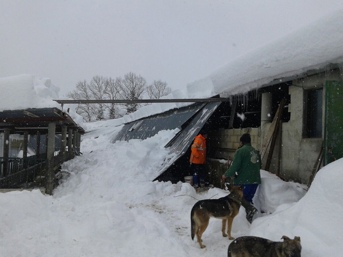 La nieve acumulada ha provocado esta madrugada el desplome del tejado de una nave con 70 cabezas de ganado dentro en el pueblo de Loma Somera, en Valderredible, aunque los animales han resultado ilesos.