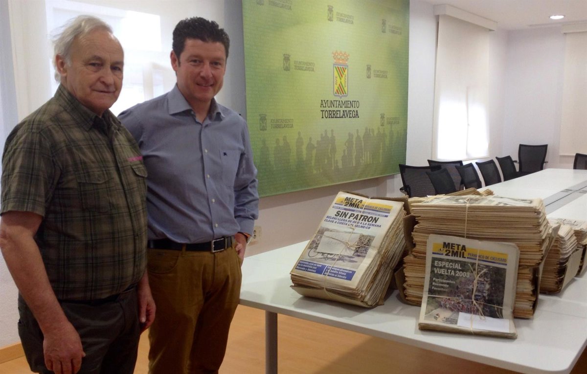 El concejal de Deportes, Jesús Sánchez, ha recibido este jueves de un vecino de Torrelavega, Manuel Quintana, 800 ejemplares del periódico de ciclismo 'Meta 2Mil' para que pasen a formar parte de los fondos del Archivo y de la Hemeroteca Municipal.