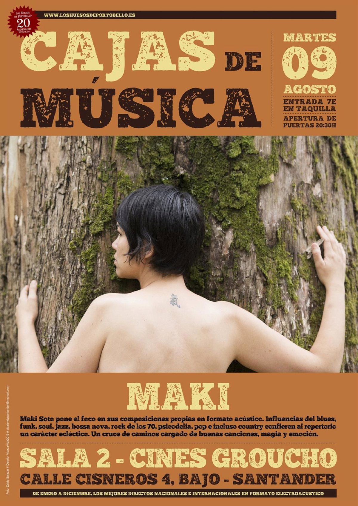 Los Cines Groucho de Santander acogerán este martes, a partir de las 20.30 horas, un concierto de la cantante, compositora y guitarrista cántabra Maki.