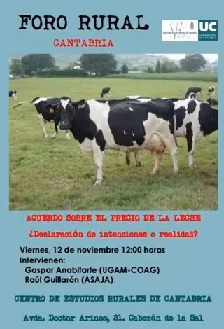 El Centro de Estudios Rurales de Cantabria (CERC), ubicado en Cabezón de la Sal, acogerá el próximo jueves, 12 de noviembre, a partir de las 12.00 horas, un foro sobre el acuerdo del precio de la leche bajo el título '¿Declaración de intenciones o realidad?'