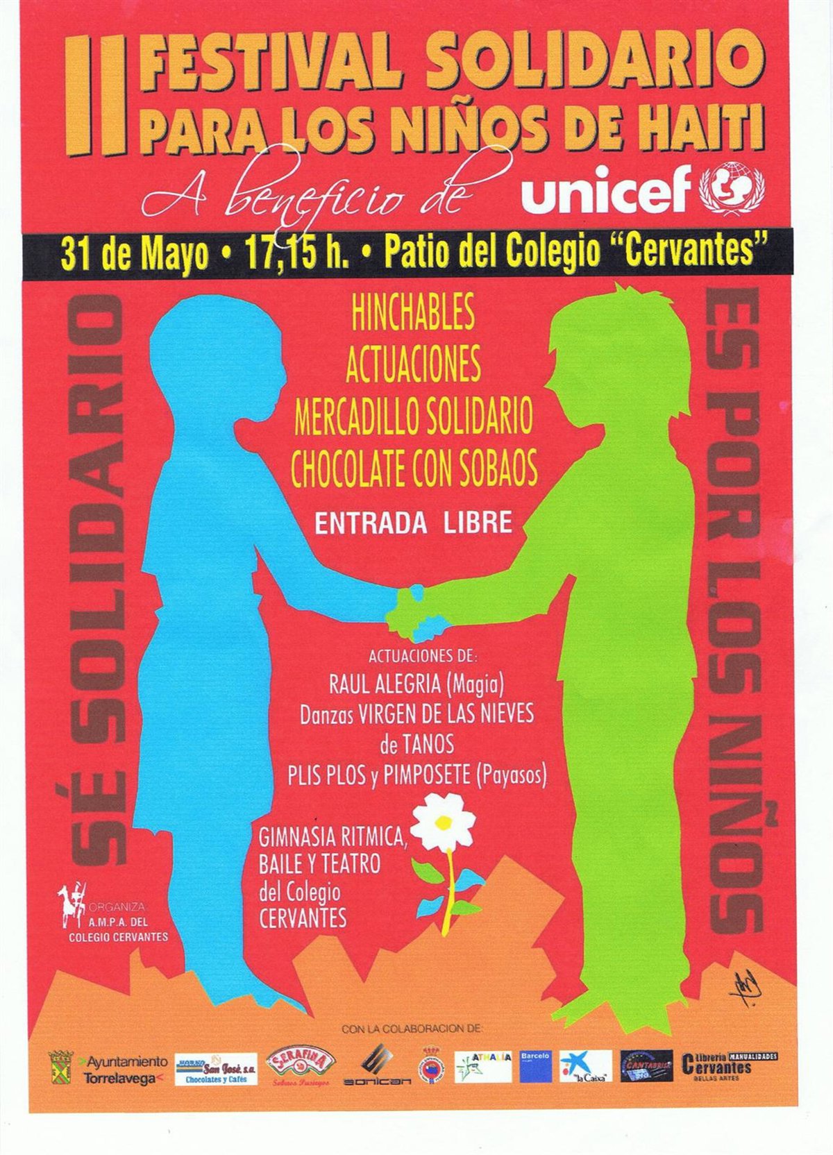 El colegio Cervantes de Torrelavega celebrará este martes, día 31, su segundo Festival Solidario para los niños de Haití, en el que habrá actuaciones, mercadillo y otras actividades.