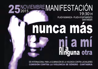 La Comisión contra la Violencia de Género de Cantabria, plataforma integrada por distintas organizaciones de mujeres y departamentos de igualdad de sindicatos y partidos políticos, ha convocado una manifestación este miércoles, 25 de noviembre, con motivo del Día Internacional para eliminación de la violencia contra la mujer.