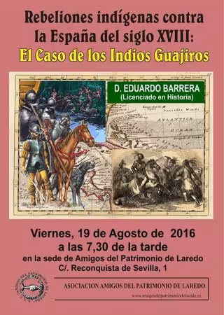 El historiador Eduardo Barrera impartirá este viernes, 19 de agosto, a partir de las 19.30 horas, en la sede de la asociación de Amigos del Patrimonio de Laredo la conferencia que lleva por título 'Rebeliones Indígenas contra la España del siglo XVIII. El caso de los indios Guajiros'.