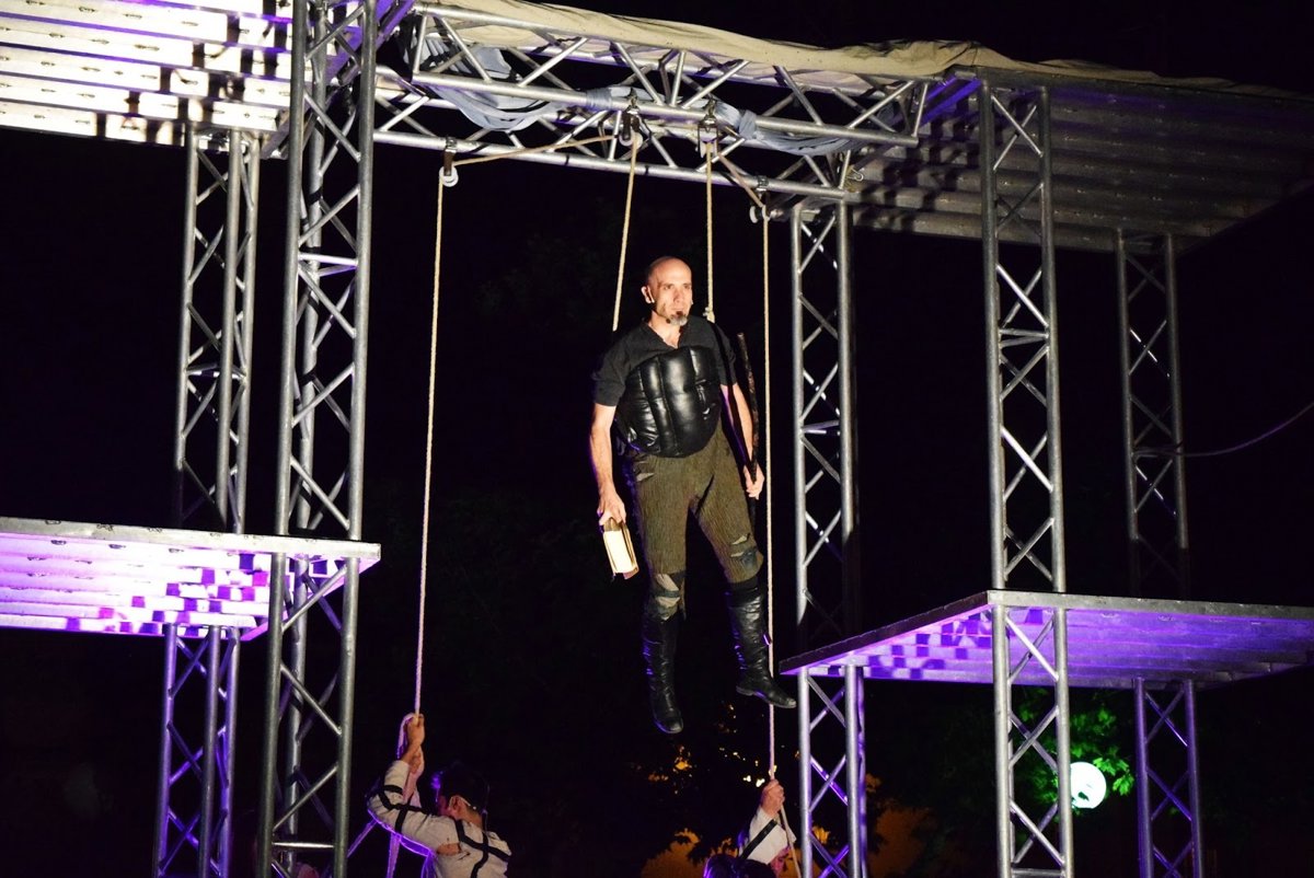 La compañía Narea Teatro conmemora así el cuarto centenario de la publicación de la segunda parte de 'El Quijot'", proponiendo con su espectáculo de calle un paseo a través de los ojos del insigne hidalgo de La Mancha, descubriendo la esencia del personaje por medio de encuentros con su bella dama Dulcinea, la batalla contra los molinos de viento, el viaje a lomos de Clavileño o la lucha contra el caballero de la Blanca Luna.