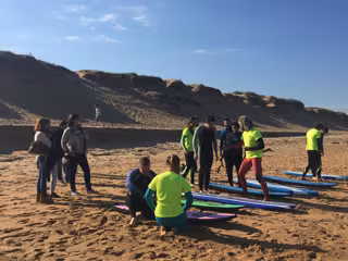 La Playa de Valdearenas, en Liencres, se ha convertido en el escenario de las primeras clases de surf para jóvenes ciegos, organizadas por las escuelas cántabras Surf Santander y Al Agua Surf, en colaboración con ONCE Cantabria.
