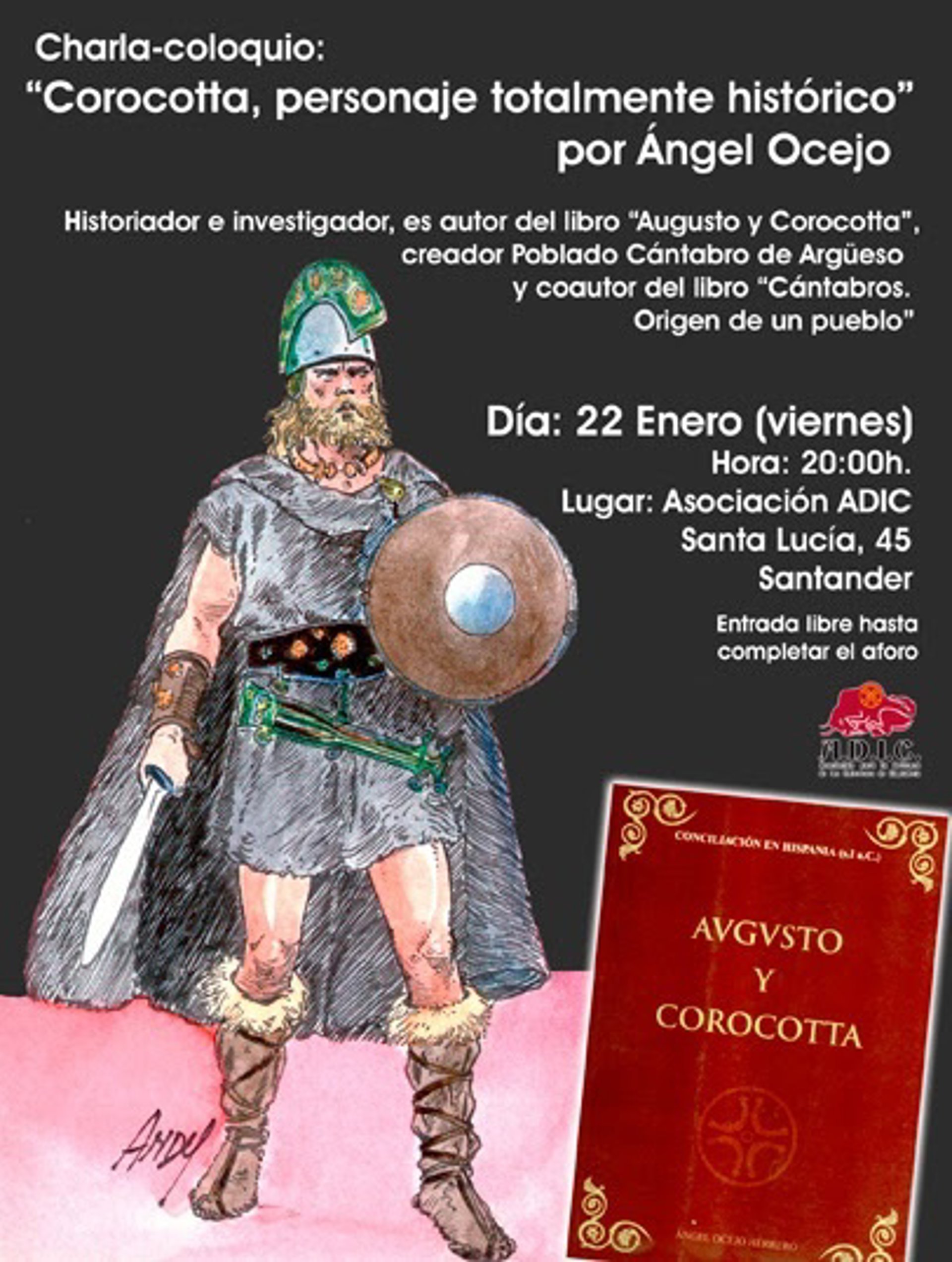 El historiador Ángel Ocejo ofrecerá este viernes 22 la charla-coloquio 'Corocotta, personaje totalmente histórico', que tendrá lugar en la sede de ADIC (Santa Lucía 45, Santander) a las 20.00 horas con entrada libre.