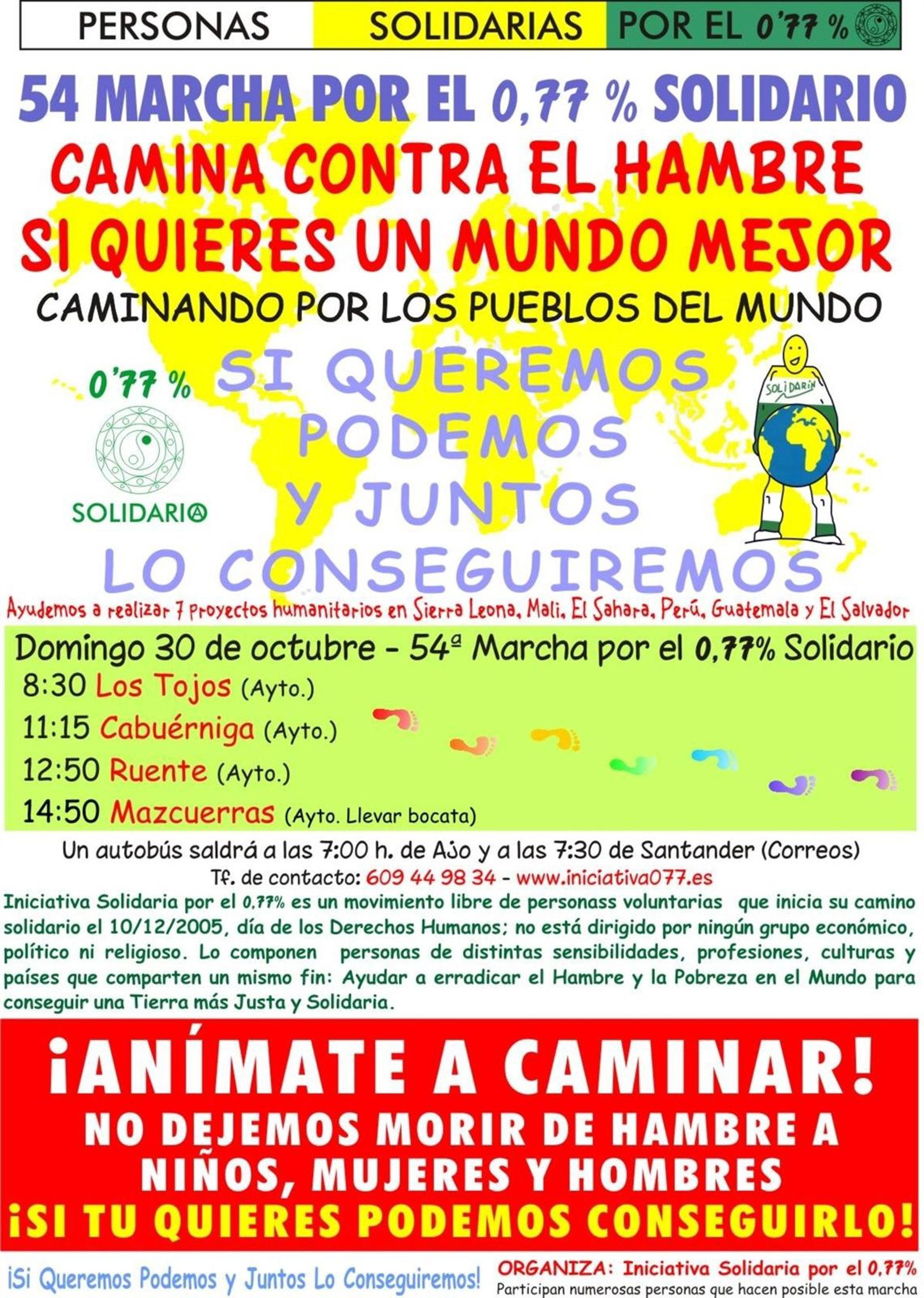 Esta es la marcha número 54 que realiza este colectivo de personas voluntarias por el 0,77 por ciento solidario. En total han caminado 1.298 kilómetros por esta causa "justa y humanitaria" con la que están ayudando a financiar y realizar siete proyectos humanitarios para las personas "más necesitadas" del planeta.