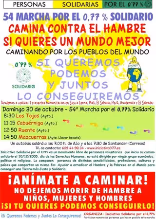 Según ha informado el colectivo en nota de prensa, la marcha partirá a las 8.30 horas del Ayuntamiento de Los Tojos, pasará a las 11.15 horas por el Ayuntamiento de Cabuérniga, llegará a Ruente a las 12.50 horas y finalizará en el Ayuntamiento de Mazcuerras, hacia las 14.50 horas.