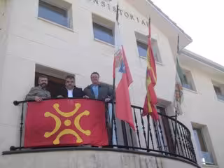 Respondiendo a esta petición, el alcalde nojeño, Miguel Ángel Ruiz, el teniente de alcalde, Javier Martín, y el concejal Enrique Viadero han colacado el lábaro en el balcón municipal.