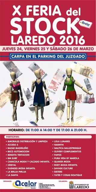 Un total de 22 establecimientos de Laredo participarán desde el jueves, 24 de marzo, al domingo, día 27, en la décima edición de la Feria del Stock, organizada por la Asociación de Empresarios de Laredo (ACELAR) con la colaboración del Ayuntamiento.