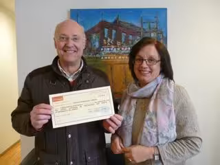 La concejala de Asuntos Sociales, Charo Losa, ha sido la encarga de entregar un cheque con los 626 euros recaudados al presidente de Cáritas Parroquial, Miguel Ángel Aja.