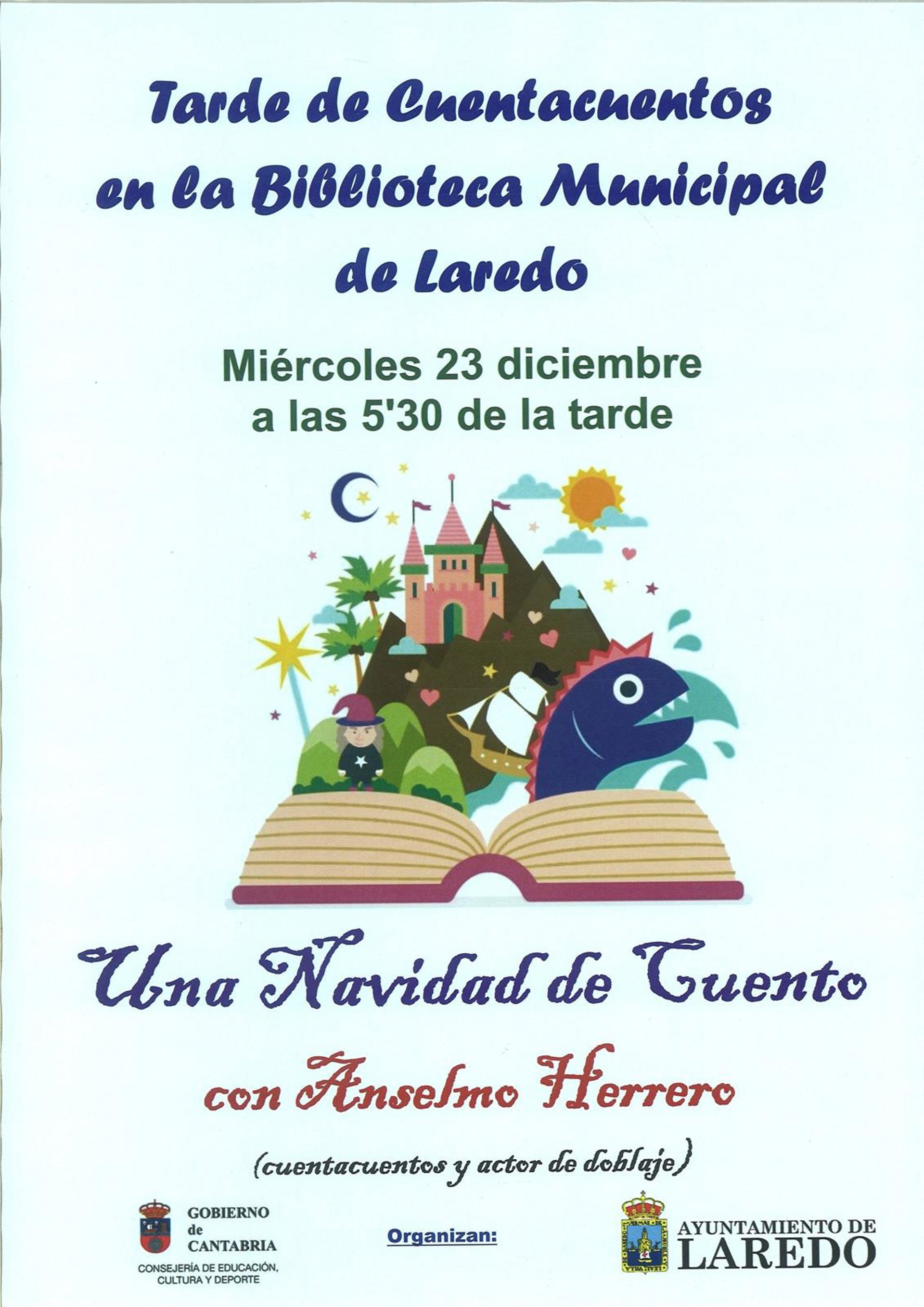 La Biblioteca Municipal Doctor Velasco de Laredo acogerá el próximo miércoles, 23 de diciembre, a partir de las 17.30 horas, una sesión de cuentacuentos en la que el actor de doblaje Anselmo Herrero relatará 'Una Navidad de cuento'.