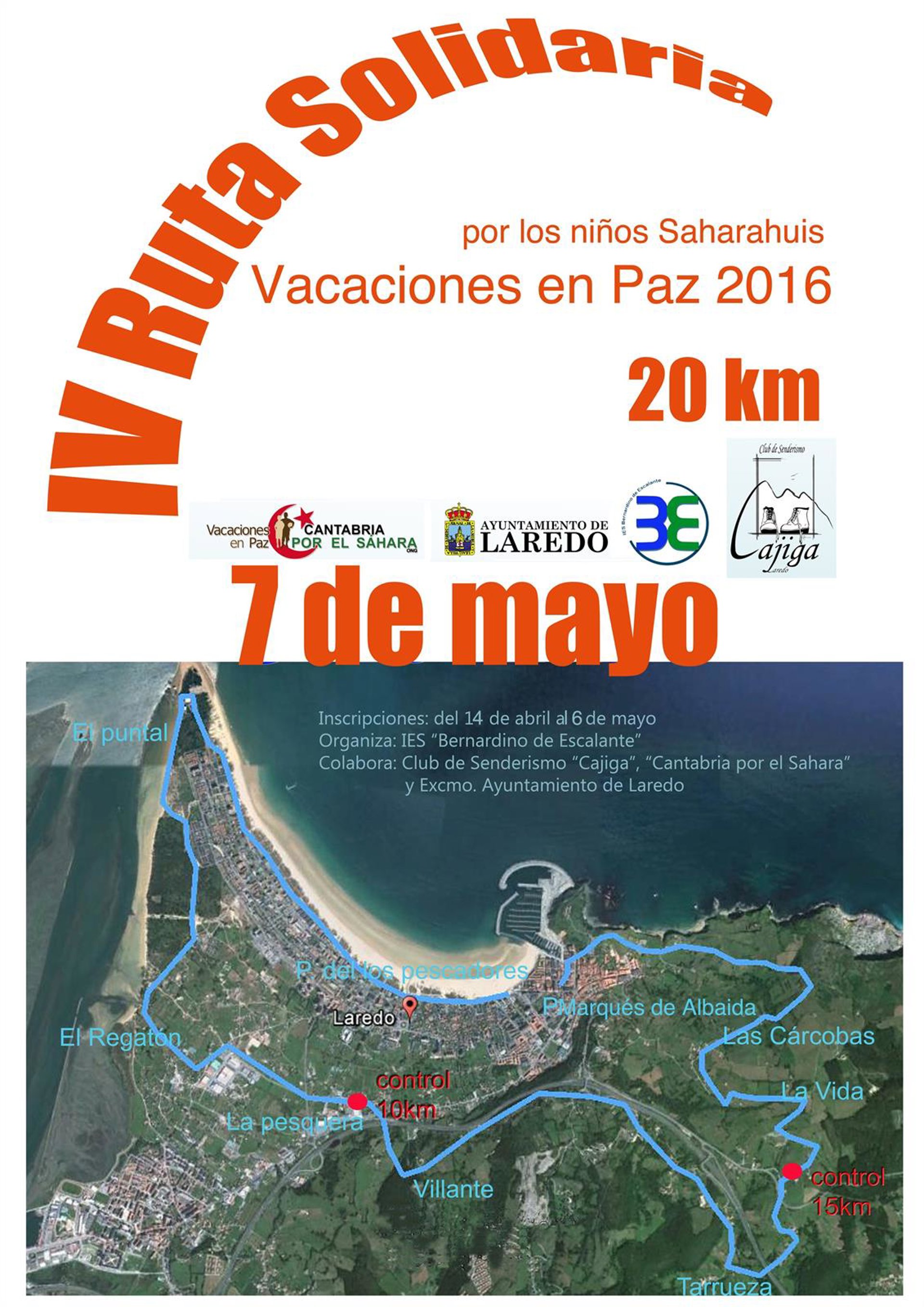 Para la organización de esta iniciativa solidaria, el IES Bernardino de Escalante y Cantabria por el Sahara cuentan con la colaboración del Ayuntamiento de Laredo y el Club de Senderismo Cajiga .