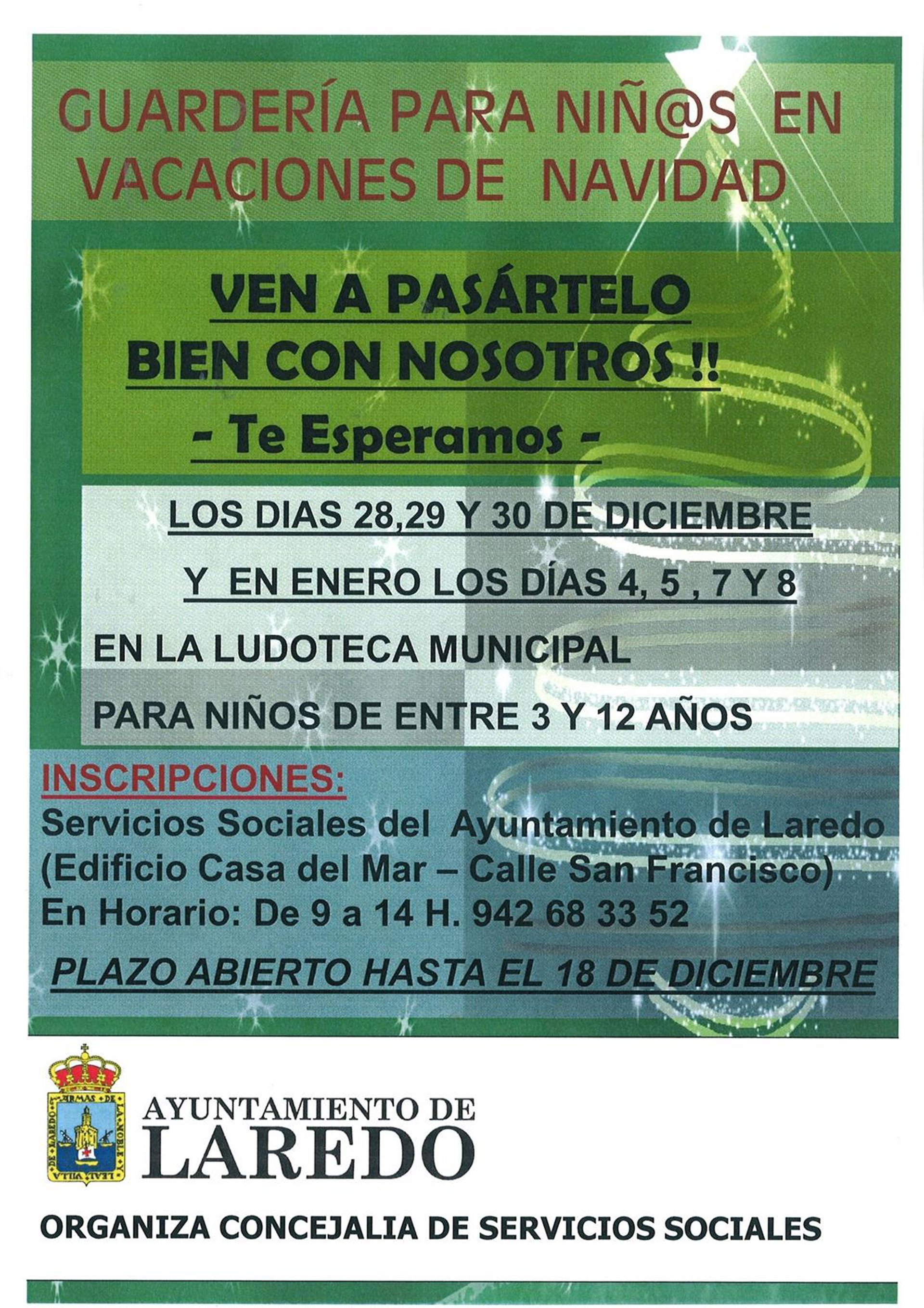 La Concejalía de Asuntos Sociales del Ayuntamiento de Laredo ofrece una guardería durante las vacaciones de Navidad, para niños de 3 a 12 años, en la ludoteca del colegio Villa del Mar de la localidad.