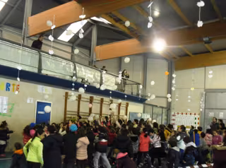 La jornada, celebrada ayer jueves, comenzó con la decoración del pabellón deportivo del colegio con palomas de papel que habían realizado los alumnos.