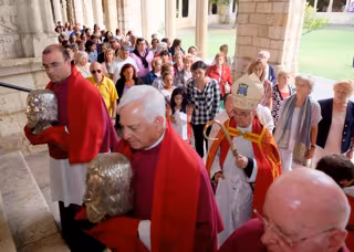 Las reliquias de los Santos Mártires, patronos de Santander y de su Diócesis, han vuelto a salir un año más de procesión, desde la iglesia del Cristo hasta la Catedral, en la víspera de su festividad, que se celebra este martes, 30 de agosto.
