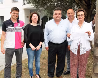 El encargado de entregar el cheque a Botella fue el alcalde de Noja, Miguel Ángel Ruiz (PRC), en presencia del gerente del Patronato Municipal de Cultura y Deporte, Gabriel Pérez y del concejal de Deportes, Álvaro Torre.