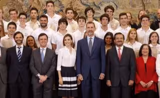 Los alumnos han acudido acompañados por el rector de la Universidad Francisco de Vitoria, Daniel Sada Castaño; el director general adjunto del Banco Santander y Santander Universidades, David Antonio Gutiérrez Cobos, así como formadores, monitores y responsables académicos, según informa la Casa Real.