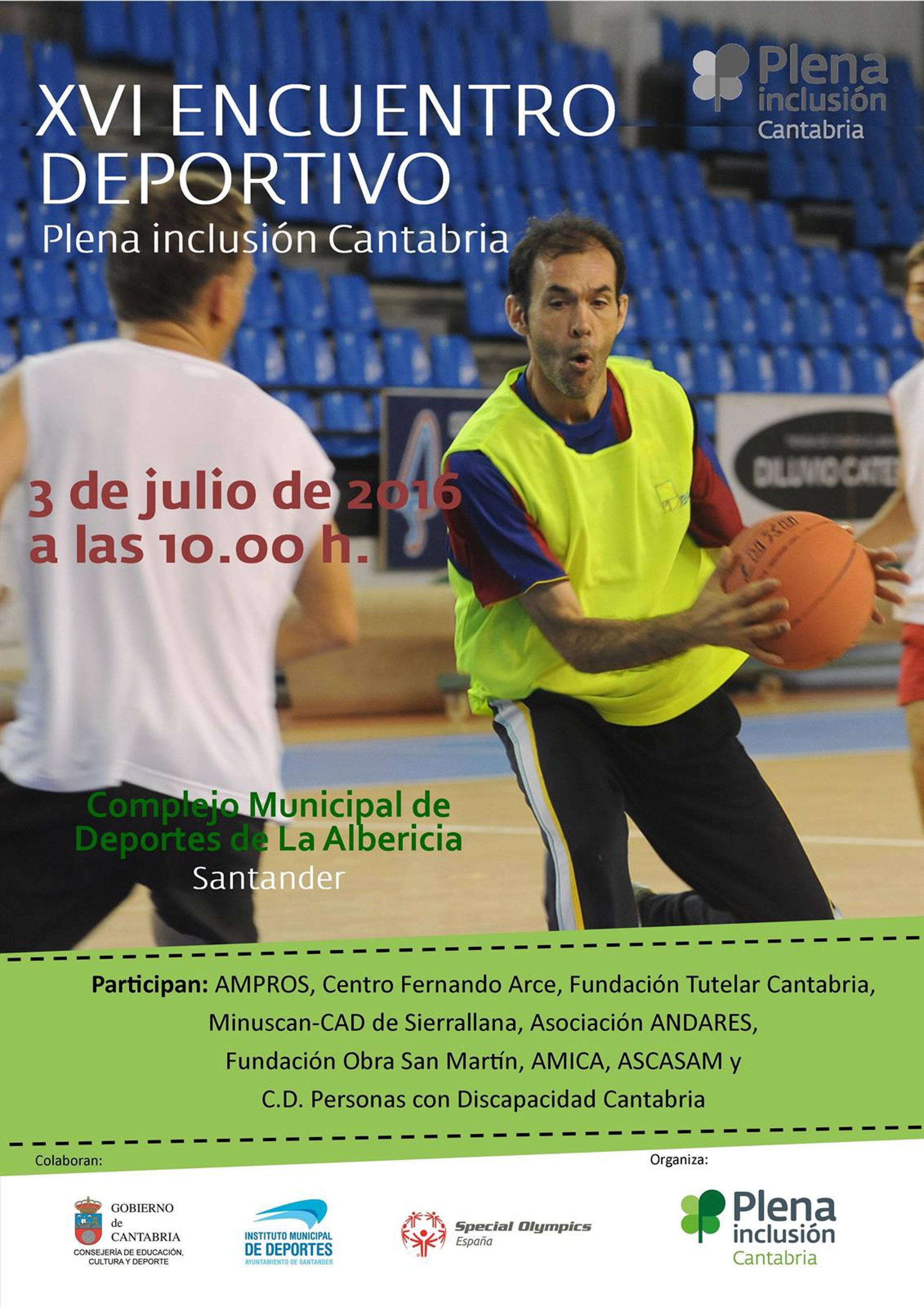 Un total de 187 deportistas con discapacidad competirán el domingo, 3 de julio, en el Complejo Municipal de Deportes de La Albericia de Santander, en una jornada organizada por Plena Inclusión Cantabria, antes FEAPS Cantabria (Asociación de Entidades de Cantabria en favor de las Personas con Discapacidad Intelectual y del desarrollo).