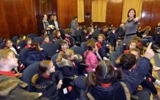 Alrededor de 80 alumnos de segundo curso de Primaria del colegio Esclavas han visitado el Ayuntamiento de Santander, donde han podido conocer mejor la historia de la ciudad y han tenido un primer acercamiento a la actividad municipal y el funcionamiento de la administración local.