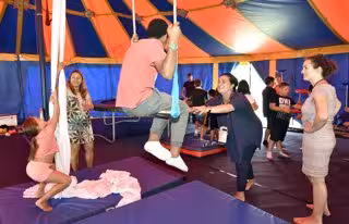 Se trata de seis talleres de acrobacia aérea con tela, trapecio y cuerda lisa, de cama elástica o trampolín y acrobacia dinámica, de acrobacia de equilibrio y equilibrio en cable de acero y malabares, todos ellos impartidos por artistas y pedagogos con una dilatada carrera profesional.