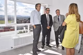 El alcalde, Íñigo de la Serna, ha visitado los dos pisos municipales rehabilitados acompañado del director de Instituciones de CaixaBank en Cantabria, César Gil; del director de Área de Negocio de la entidad en Santander, Juan Faustino González, y de la concejala de Familia y Servicios Sociales, María Tejerina.