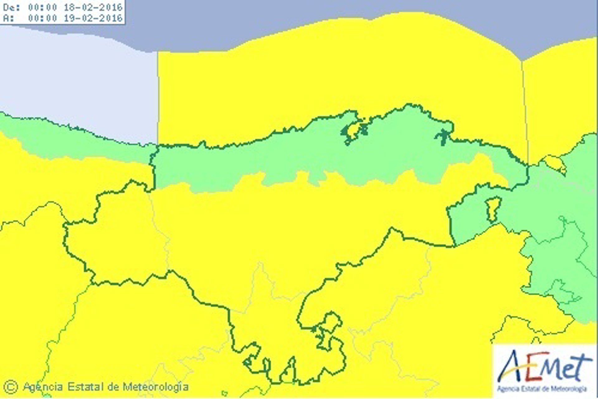 Además, el litoral estará en alerta amarilla por oleaje hasta las 9.00 horas.